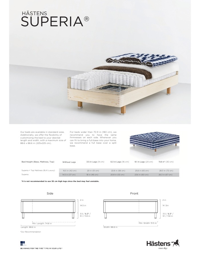 Med Hästens Superia boxmadras kan du tilpasse din seng med valg af tekstilfarver, ben og smukke sengegavle, så du opnår præcis det udtryk, du ønsker i soveværelset.