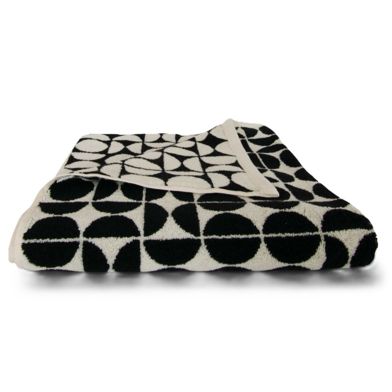 Det geometriske mønster i sort og creme tilfører et friskt og stilfuldt udtryk, som passer ind i både klassiske og moderne hjem. Håndklæderne måler 70×140 cm og er ideelle som badehåndklæder i badeværelset eller hvor du ønsker et elegant touch.