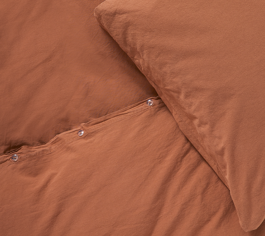 Brunt stenvasket sengetøj med fokus på tryghed og kemi