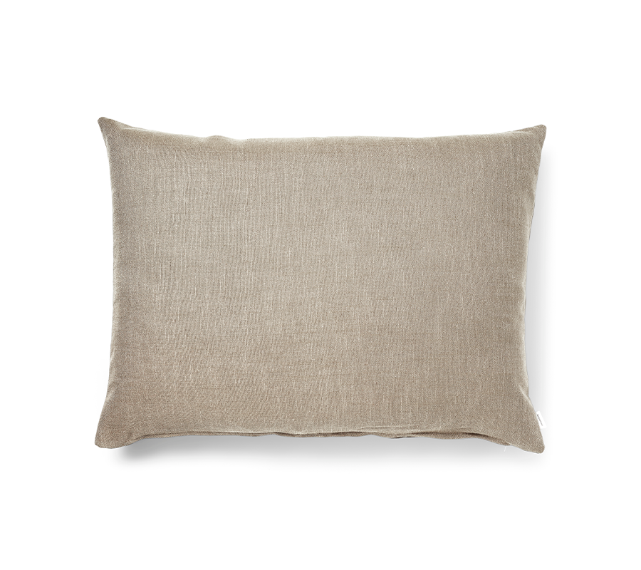Puden er vævet i 54% polyester, 36% viskose og 10% hør. Denne unikke sammensætning giver både blødhed, slidstyrke og en naturlig struktur, som gør puden til et tidløst element i hjemmet.